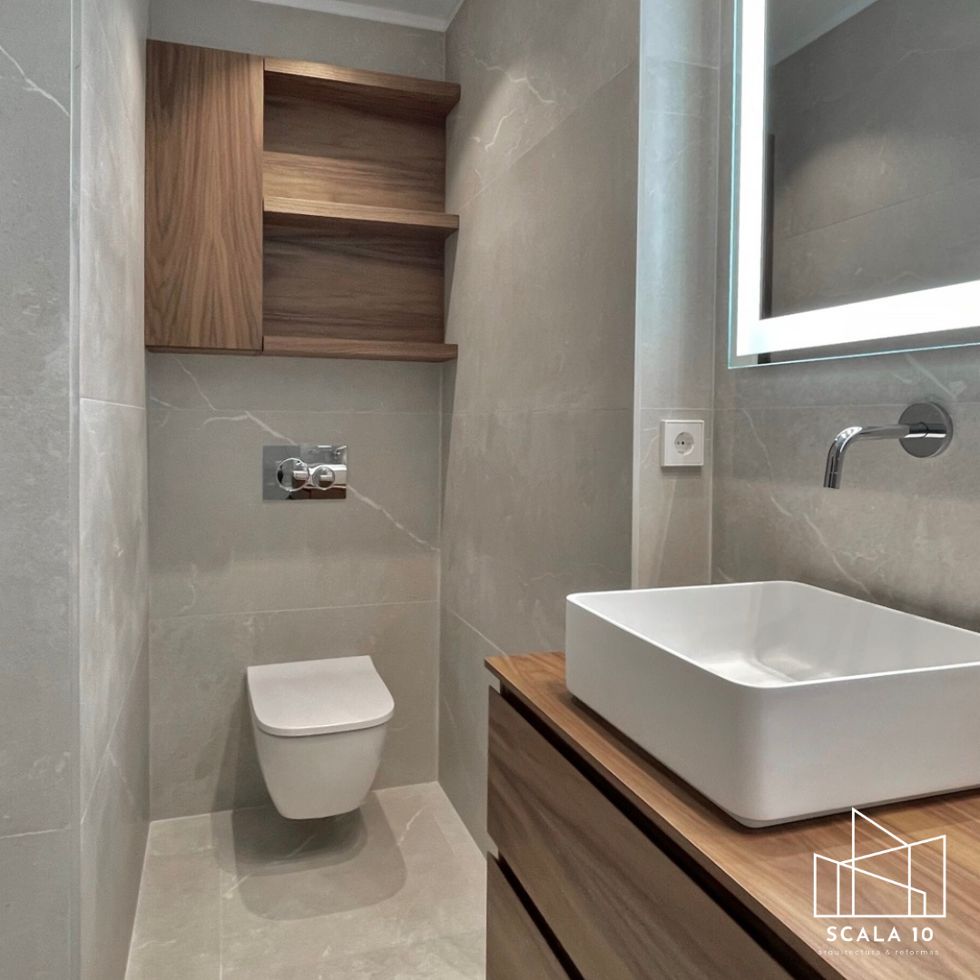 Baño con fontanería de primera y retrete minimalista en piso reformado de Salamanca